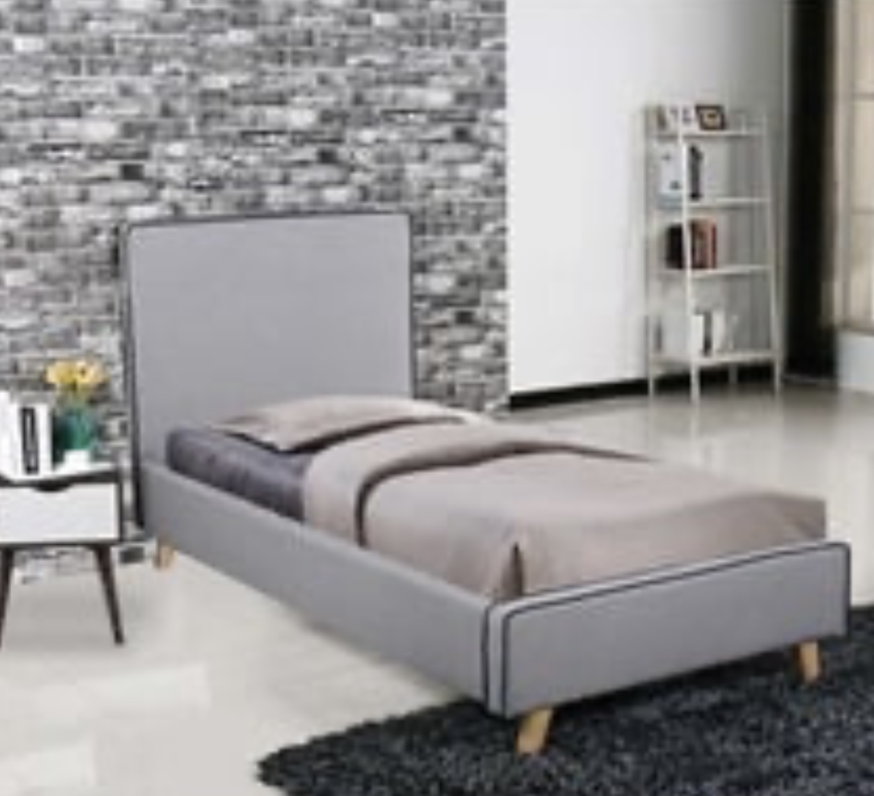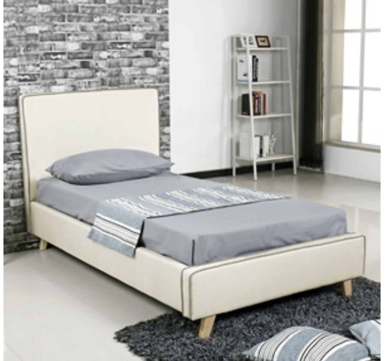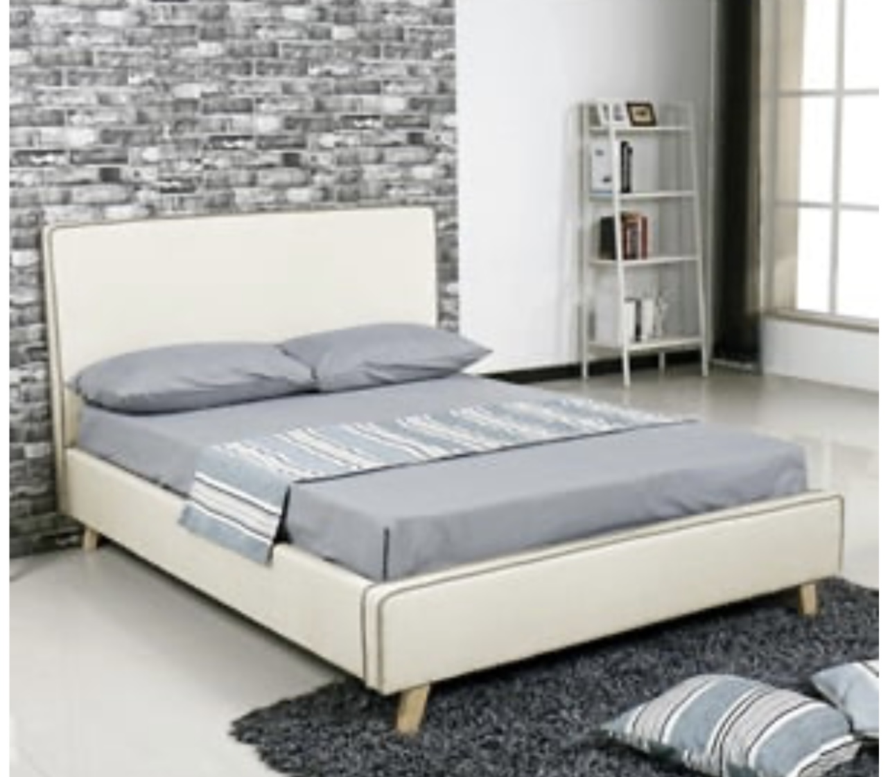 Κρεβάτι  λιτού και πρακτικού σχεδιασμού, σε απαλούς χρωματισμούς για ένα ζεστό υπνοδωμάτιο.