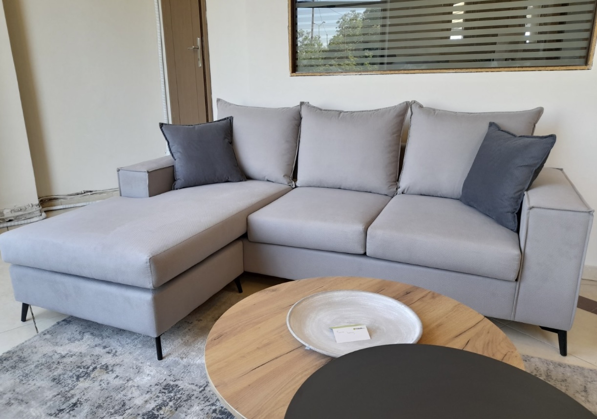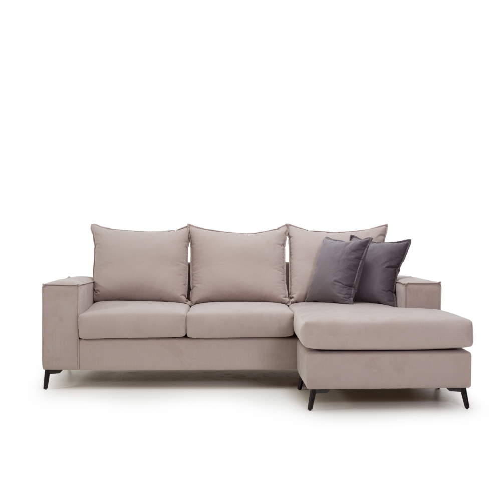 - Γωνιακό σαλόνι με easy-clean, αδιάβροχο ύφασμα σε Γκρι -Μόκα -Έλεφαντ αποχρώσεις για αισθητικά μοντέρνο αποτέλεσμα. Δυνατότητα αναστροφής της γωνίας είτε δεξιά είτε αριστερά για να προσαρμοστεί τέλεια στον δικό σας χώρο.