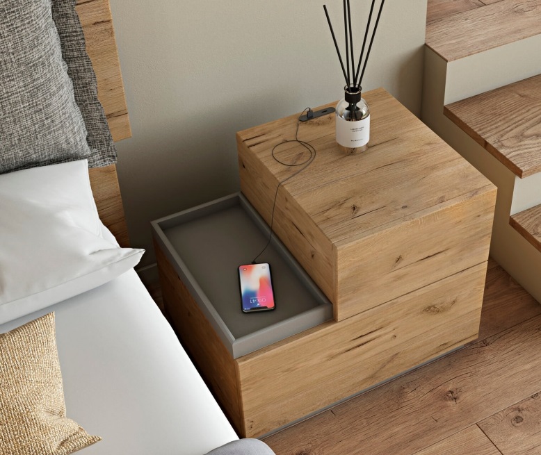- Η κρεβατοκάμαρα Soho είναι κατασκευασμένη από ξύλο δρυς rustic σε χρώμα Pale brown rustic oak (D8) ή κατα προτίμηση από ξύλο δρυς rustic σε χρώμα Dark brown rustic oak (D9).