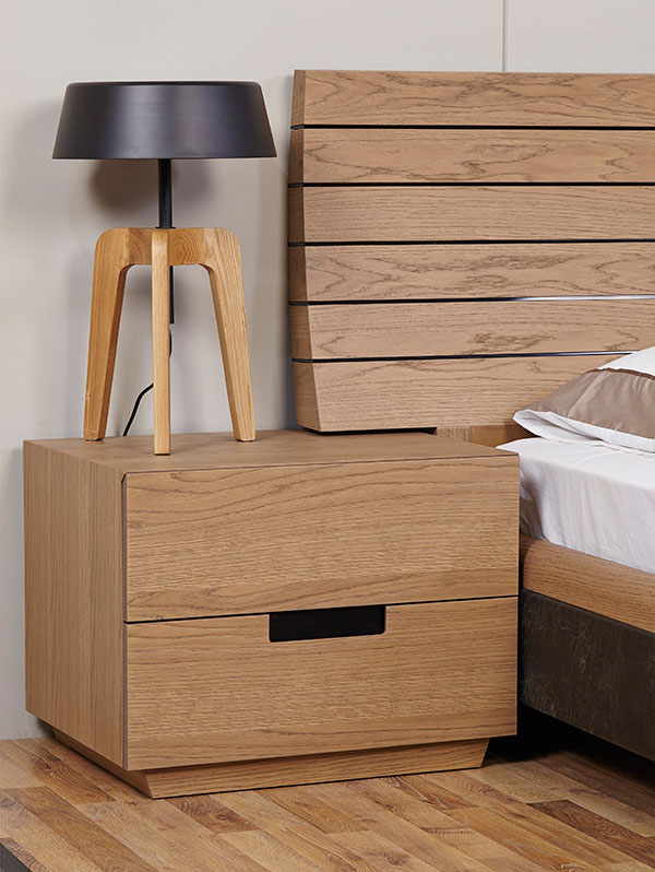 Σετ κρεβατοκάμαρας, απο ξύλο δρύς φυσικής απόχρωσης, με στοιχεία σε γκρι λάκα