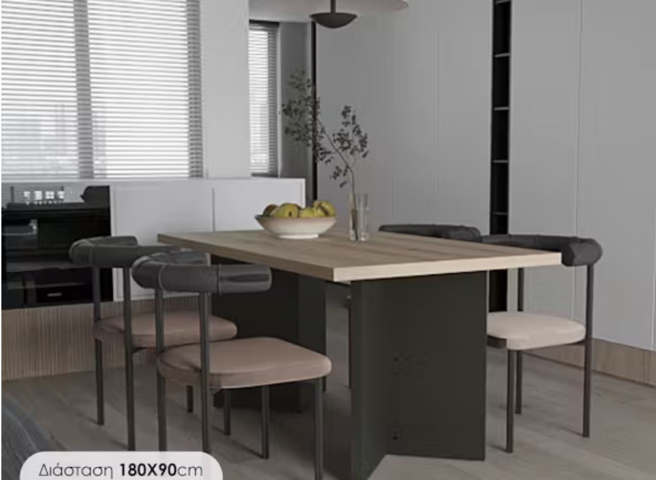 Μια σταθερή τραπεζαρία με επιφάνεια πάχους 38mm. Με στιβαρή βάση πάχους 38mm ανθρακι χρώματος . Διάσταση 180Χ90cm.