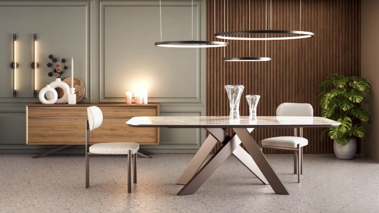 | Τραπέζι , μοντέρνου και κομψού σχεδιασμού, για μια εντυπωσιακή και επιβλητική τραπεζαρία.