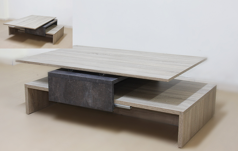 • Περιστρεφόμενο-συρρόμενο τραπέζι σαλονιού με τεχνοτροπία ξύλου σε φυσική απόχρωση και με λεπτομέρεια σε τεχνοτροπία γρανίτη.Έξυπνος σχεδιασμός καθώς η επιφάνεια του μπορεί να μετακινηθεί προς 4 κατευθύνσεις. Διαθέσιμο και σε άλλους χρωματικούς συνδυασμούς.